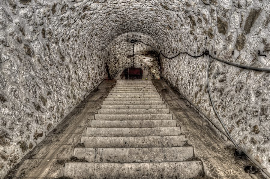 Posant votre main sur la poignée, vous l'actionnez et vous poussez de toute vos forces. Du fait qu'ils sont rouillés, les gongs ont d'abord du mal à bouger mais s'ensuit un bruit grinçant et la porte s'ouvre alors sur une volée de marche qui s'enfoncent vers le bas. Le tunnel et noir et sent l'humidité. on comprend rapidement que personne n'est passé ici depuis des années!
